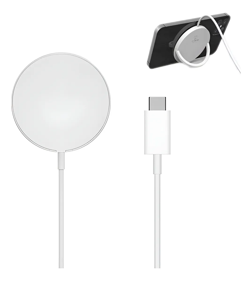Este cargador se distingue por su diseño elegante y moderno. Generalmente, cuenta con una base delgada y compacta, que se adapta fácilmente a cualquier entorno, ya sea en una oficina o en el hogar. La superficie suele estar revestida en materiales de alta calidad como el aluminio y plástico de acabado premium, lo que no solo mejora su apariencia, sino también su durabilidad. Además, la característica magnética facilita un alineamiento preciso del dispositivo, asegurando una carga eficiente y sin complicaciones.